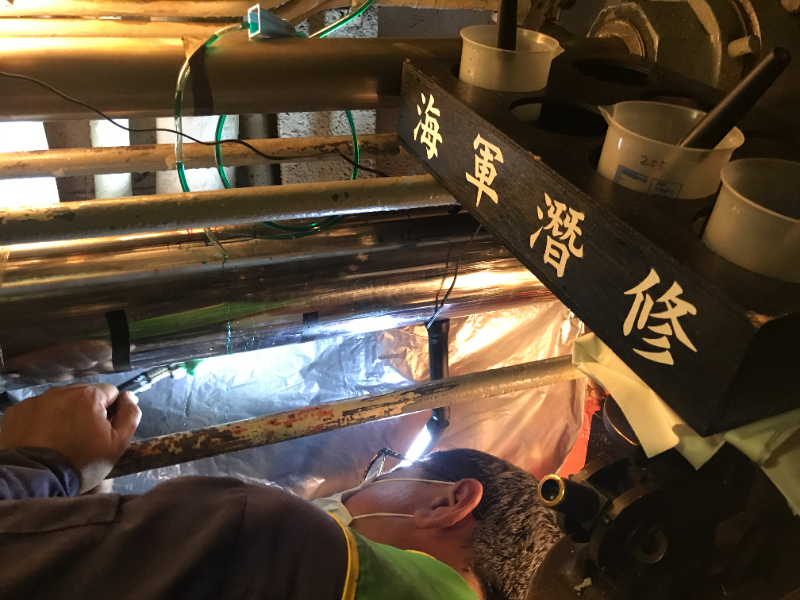 經由RR(Rolls-Royce)原廠技師建議採刷鍍覆蓋刮痕後重新加工的方式對大軸影響最小,且船大軸已在完成的船體內,大軸拆出運送極為困難還需切割船體才 能將軸運出